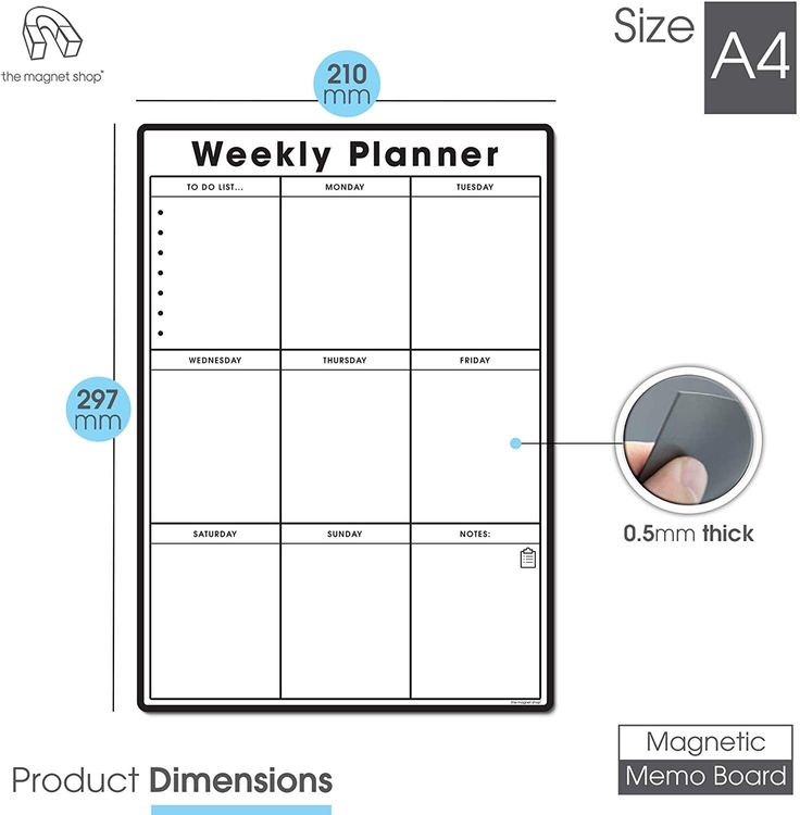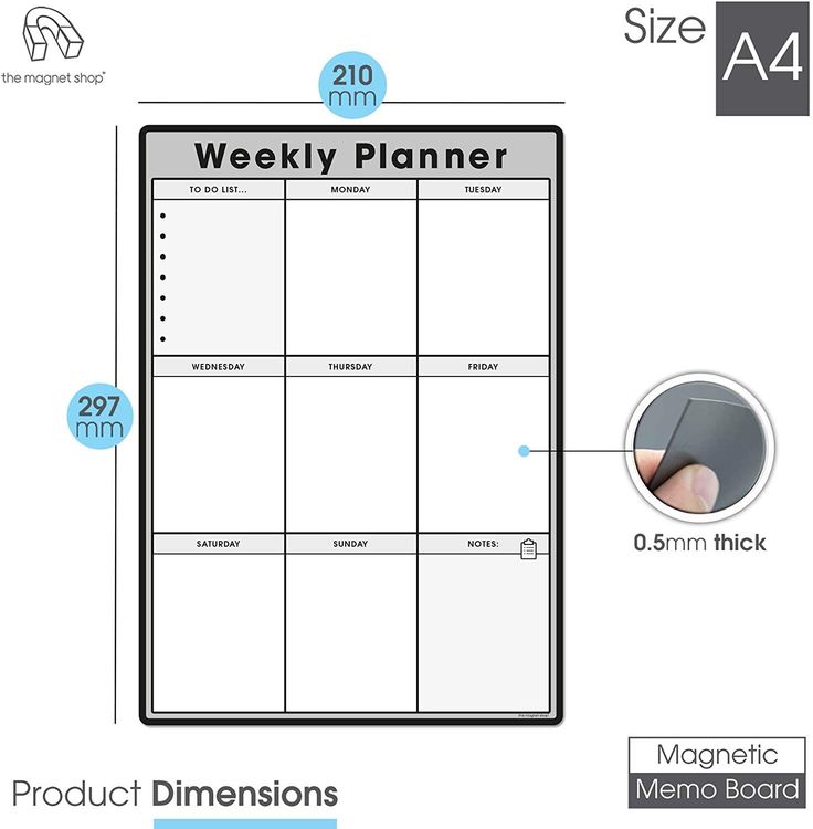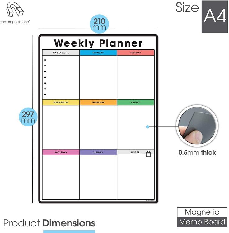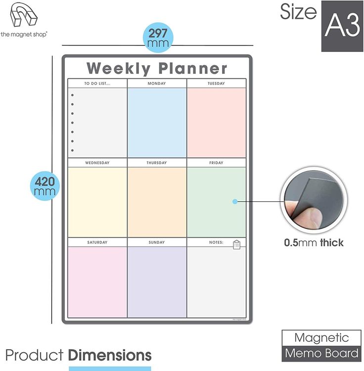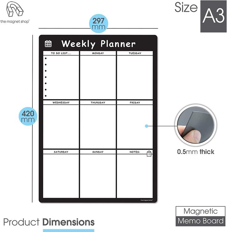 Use your new memo board at home to organise family chores, meals and events or at the office too. The board is fully customisable and has plenty of space for each day of the week! Make use of the additional note taking and bullet point sections to maximise your organising.